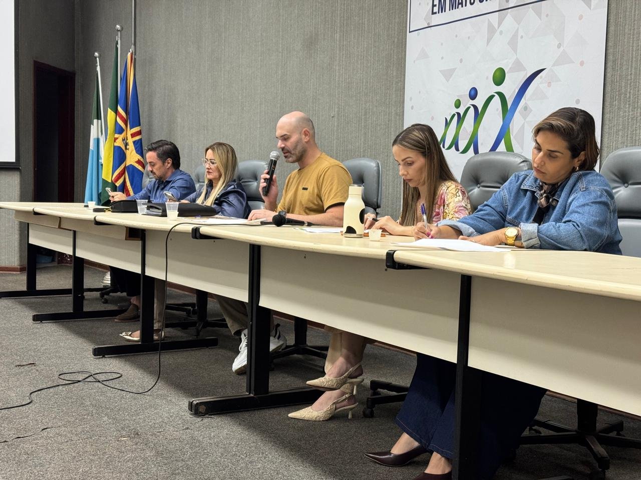 A mesa de abertura contou com a presença da diretoria do COSEMS/MS, composta pelo presidente Janssen Portela Galhardo, secretário municipal de Saúde de Iguatemi; o 1º Vice-Presidente, Vinicio de Faria e Andrade, secretário municipal de Saúde de Itaporã; a 2ª Vice-Presidente, Aline da Silva Cauneto, secretária municipal de Saúde de Bataguassu; a Diretora Administrativa, Ana Carolina Colla Rodrigues, de Bonito; a Diretora Financeira, Letícia Rodrigues Sanches, de Batayporã; a Diretora de Comunicação Social, Ludelça Dorneles dos Santos, de Vicentina; e a Diretora dos Municípios com Populações Ribeirinhas, Indígenas, Quilombolas e em Situação de Vulnerabilidade, Kellen Medeiros Venciguer, de Miranda.