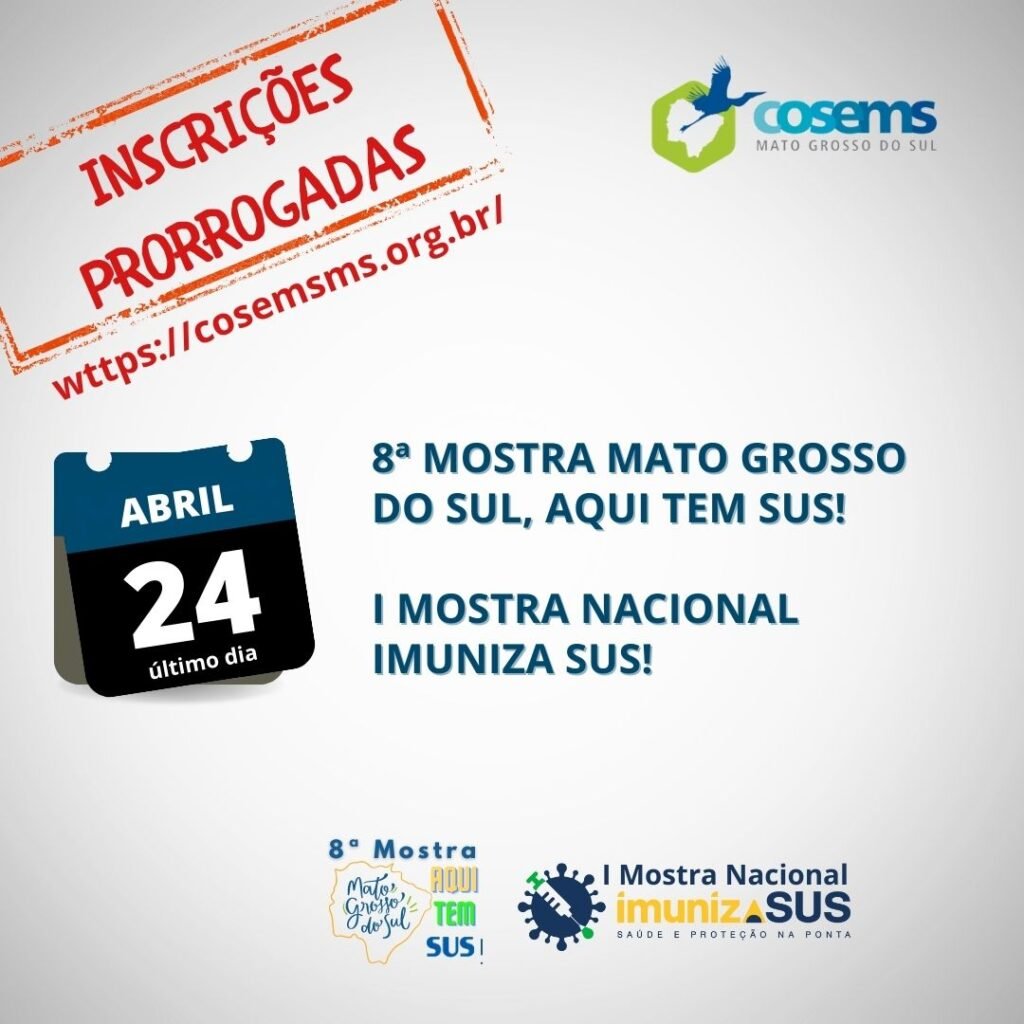 Prorrogada, até o dia 24, as inscrições para a 1ª Mostra Nacional ImunizaSUS e para a 8ª Mostra Mato Grosso do Sul, aqui tem SUS!