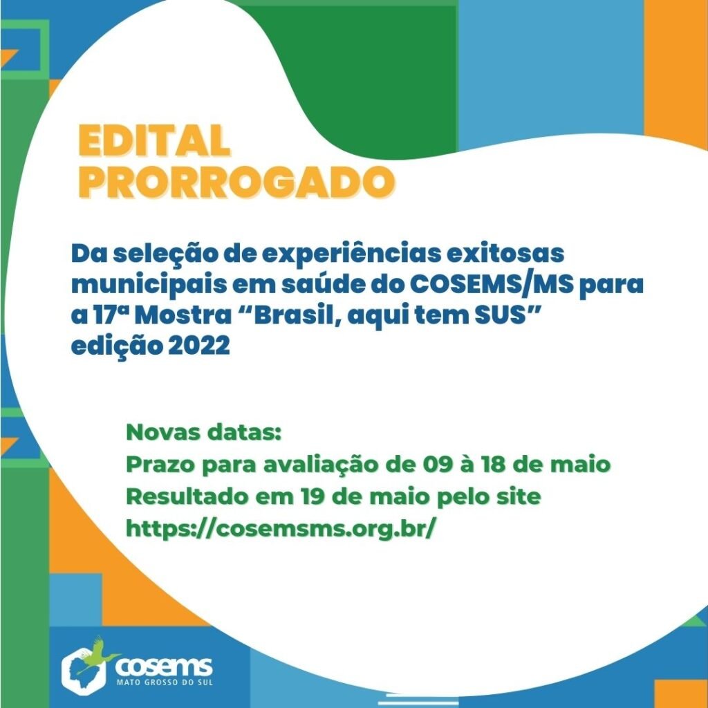 Veja o regulamento da seleção de experiências exitosas municipais em saúde do COSEMS/MS para a 17ª Mostra “Brasil, aqui tem SUS” edição 2022