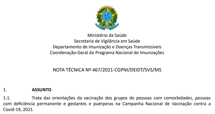 Covid-19: vacinação de pessoas com comorbidades, deficiência permanente, gestantes e puérperas deve ser feita em duas etapas
