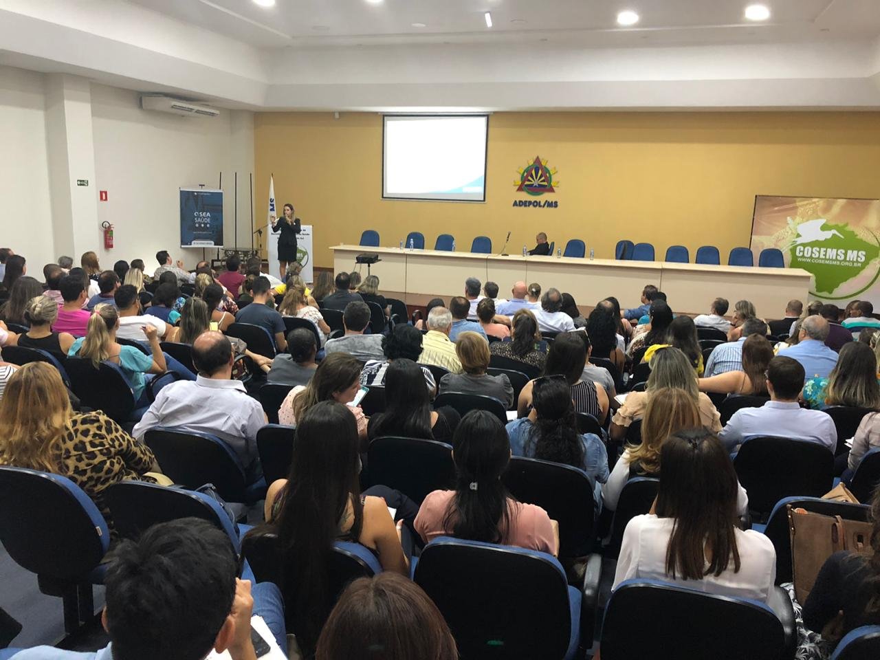 O Conselho de Secretários Municipais de Saúde de Mato Grosso do Sul – COSEMS/MS realizou ontem (18 de Novembro), no auditório da Associação dos Delegados de Polícia do Estado – ADEPOL/MS, em Campo Grande/MS o Seminário: “Novo Modelo de Financiamento da Atenção Primária à Saúde”, que contou com a participação da Vice Presidente do CONASEMS: Cristiane Martins Pantaleão, do Assessor Técnico do CONASEMS: Diogo Demarchi Silva e da Diretora de Programa da Secretaria de Atenção Primária à Saúde do Ministério da Saúde: Caroline Martins, o representante da ASSOMASUL, José Domingues Ramos e o representante da SES/MS, André Vinicius Batista de Assis.